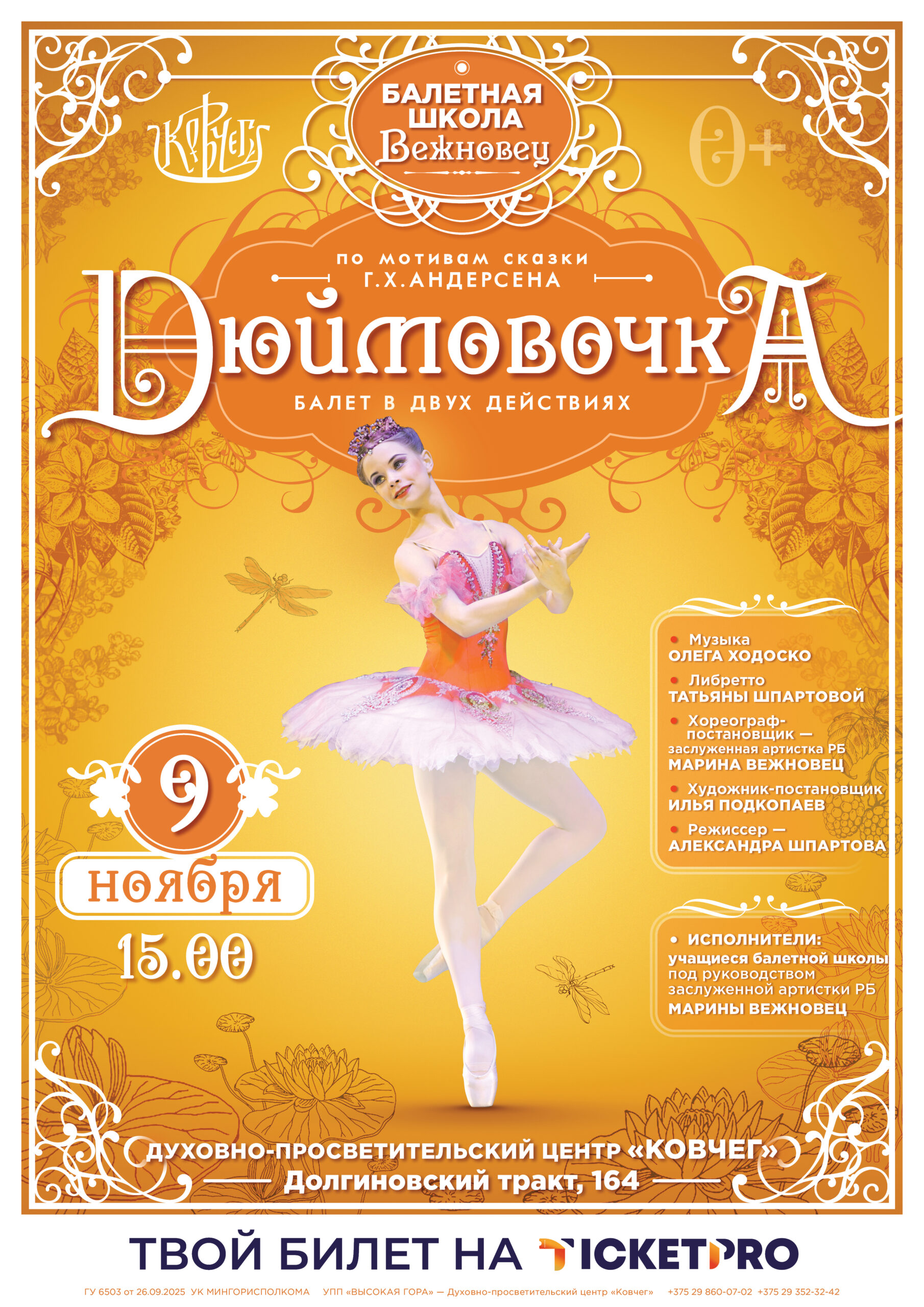 Двухактный детский балет «Дюймовочка» создан детской балетной школой под руководством заслуженной артистки Республики Беларусь Марины Вежновец и при поддержке Министерства культуры Республики Беларусь.